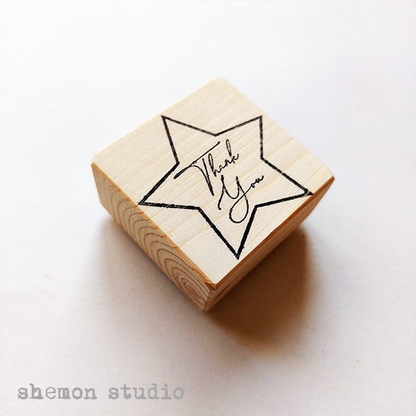 star shaped thank you wooden rubber stamp
