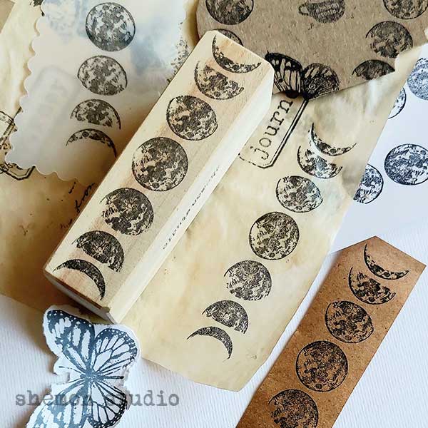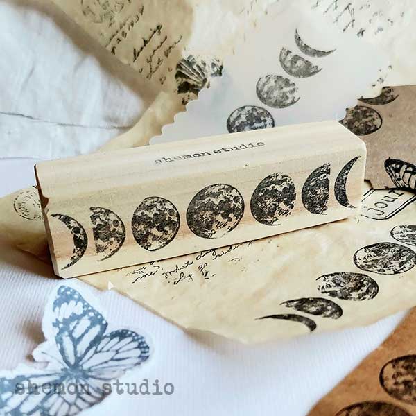 Moon phases wooden rubberstamp