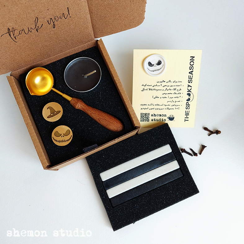 هر باکس "مینی کیت مهروموم هالووین" شمون شامل: