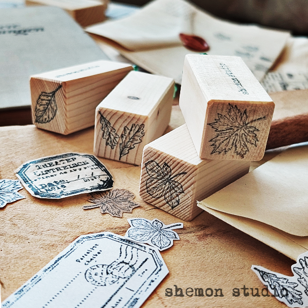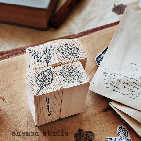 پک چهارتایی مهر های چوبی طرح برگ پاییز